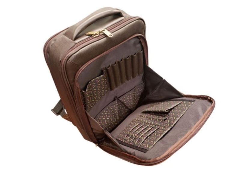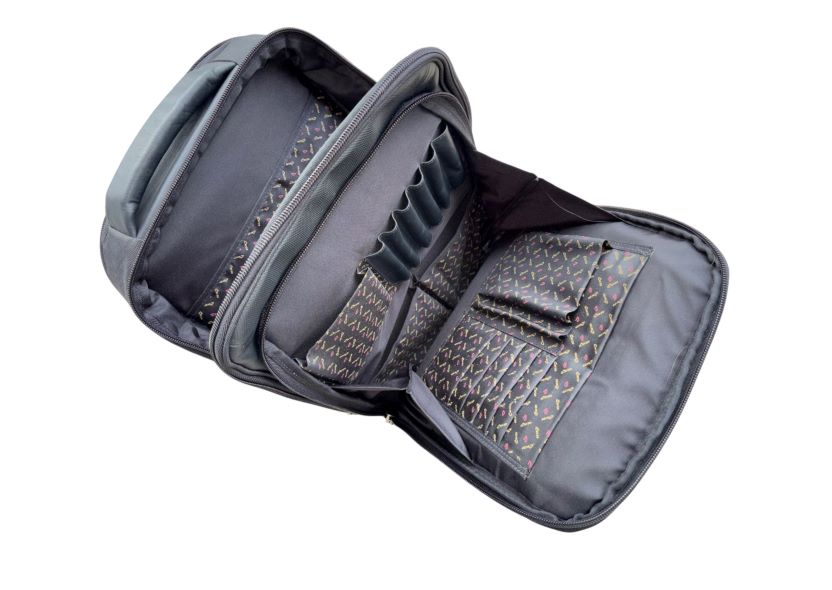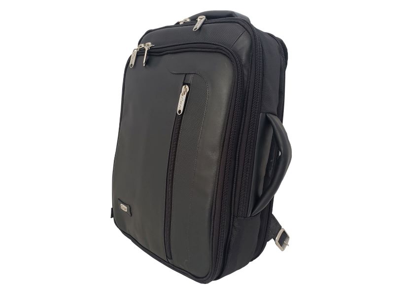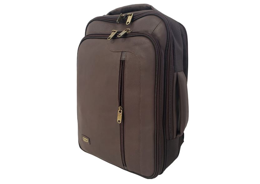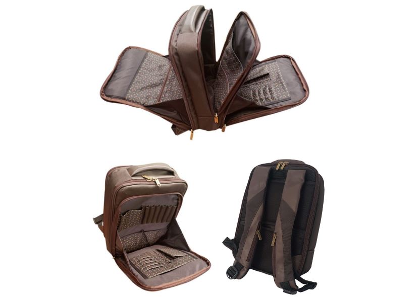 Morral ejecutivo, en cuero legítimo con lona de alta gama, doble manija, 34 servicios.
