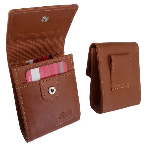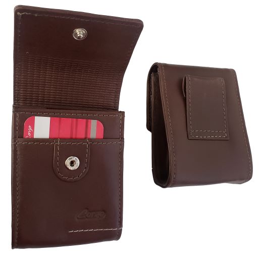 Monedero con porta documentos para cinturón en cuero legítimo.
