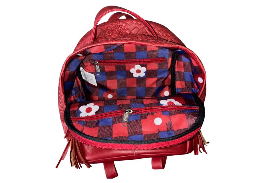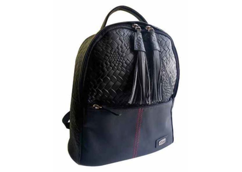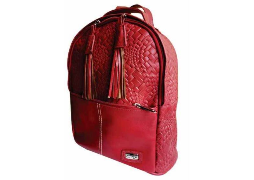 Bolso Morral, en cuero legítimo, tipo tula con penachos, 5 servicios.