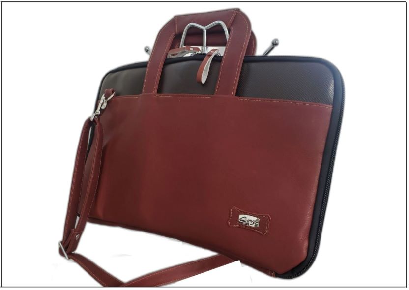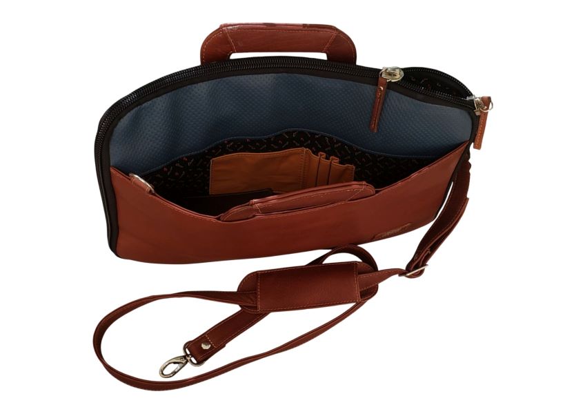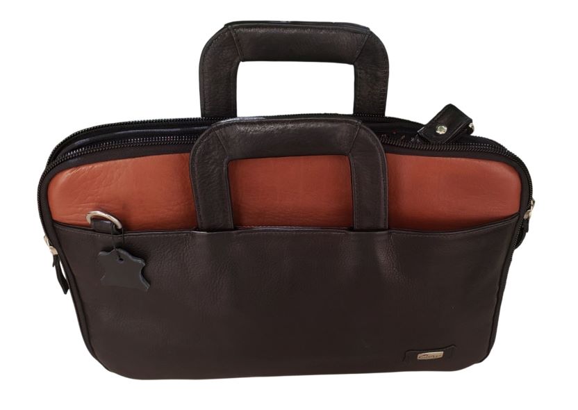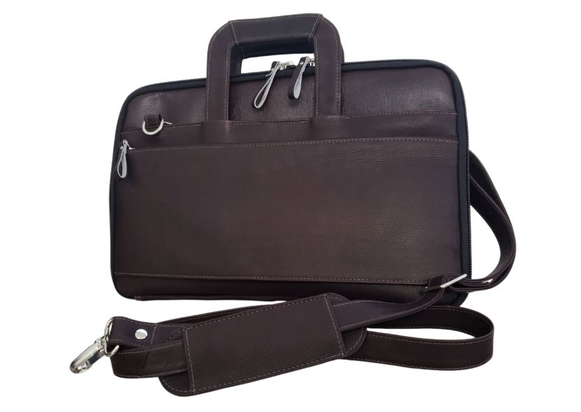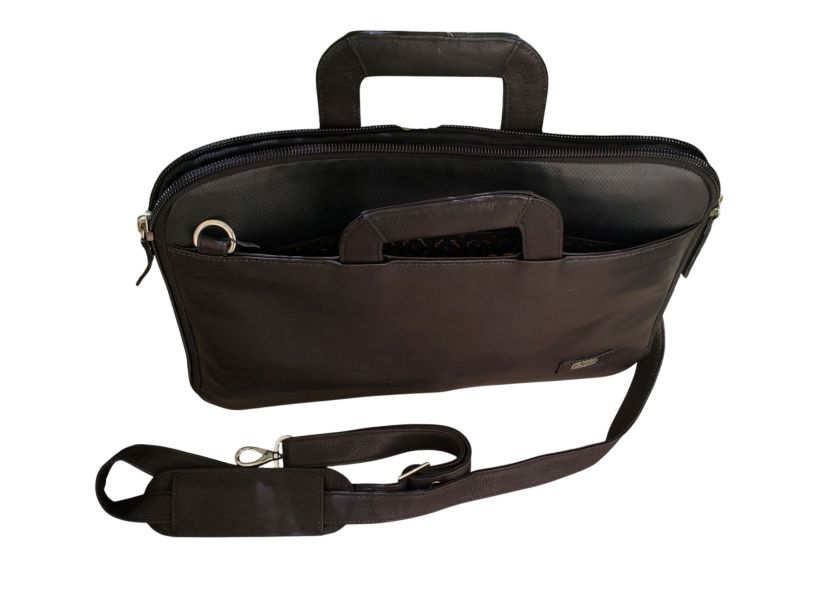 Maletín Porta computador, plano, en cuero legítimo, 8 servicios.