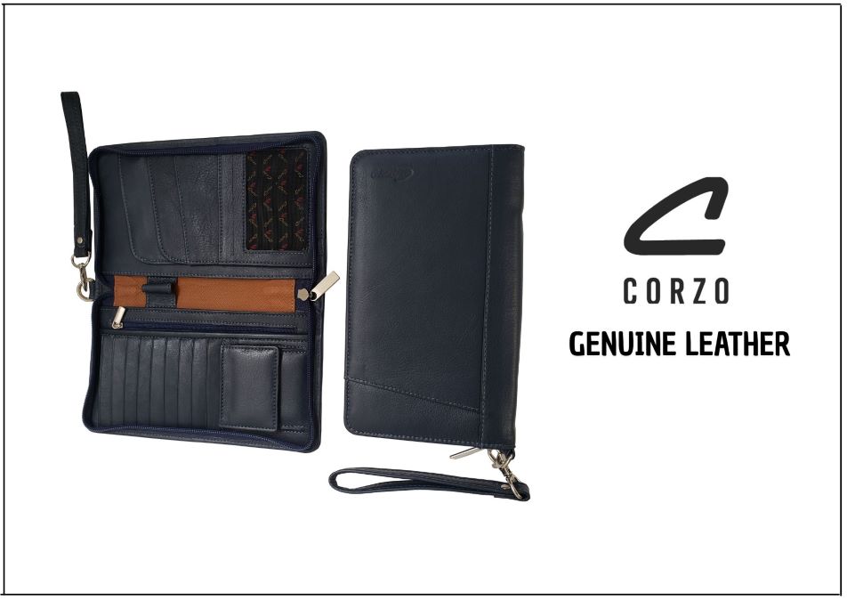 Porta documentos, elaborado en cuero legìtimo, terminación fina, 12 servicios.