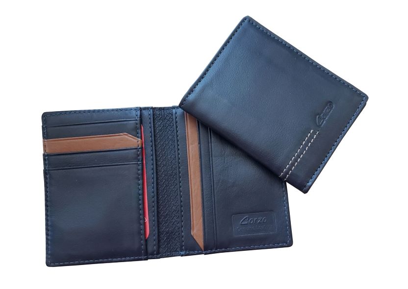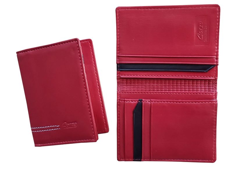 Porta documentos tarjetero , en cuero becerro legitimo, 5 servicios con ventanilla.